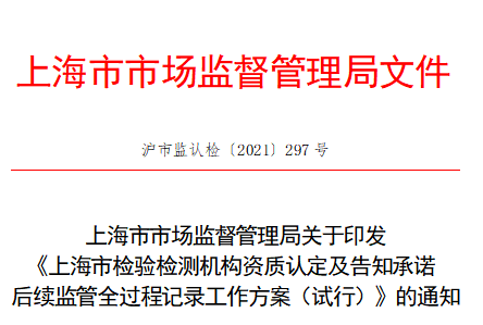 5月24日,上海市市場監(jiān)管局發(fā)布《上海市檢驗檢測機構(gòu)資質(zhì)認定及告知承諾后續(xù)監(jiān)管全過程記錄工作方案(試行)》。《工作方案(試行)》提出,上海市檢驗檢測機構(gòu)資質(zhì)認定所有審批事項(包括首次、復(fù)查、擴項、變更)及告知承諾后續(xù)監(jiān)管實施全過程記錄。其中,對上海市檢驗檢測機構(gòu)資質(zhì)認定現(xiàn)場評審及告知承諾后續(xù)監(jiān)管現(xiàn)場檢查實施全程音像記錄。
