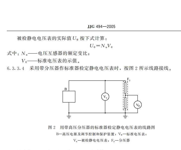 2檢定靜電表各個量程時,高壓電源調節設備應保證電壓由零值調到上量限并能平穩、連續地調到靜電電壓表的任何一個分度線,其調節細度應不低于10分之1K%(K為被檢靜電電壓表準確度等級的數值)。