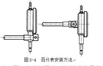 1 用百分表或千分表測量零件時(shí),測量桿必須垂直于被測量表面。圖5-4所示。即使測量桿的軸線與被測量尺寸的方向一致,否則將使測量桿活動(dòng)不靈活或使測量結(jié)果不準(zhǔn)確。