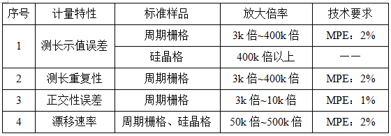 儀器在校準過程中需要考慮的環境條件包括溫度:(20±5)℃,濕度:≤70%RH,其中,實驗室震動和電磁輻射應不影響測量結果。而儀器的校準項目所采用的標準樣品是周期柵格、硅晶格等,可根據計量特性、儀器測量范圍和實際使用情況選用相適應的標準樣品。